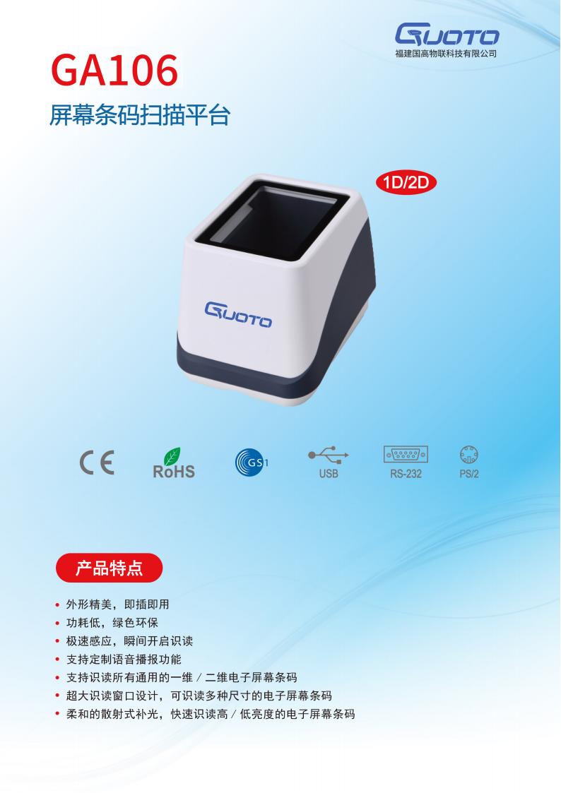 GA106屏幕条码扫码平台